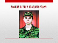 В нашей школе Сергей учился с пятого по девятый класс. Окончил девятый класс в 2006 году. В 2022 году был мобилизован для участия в специальной военной операции в Донецкой народной республике. Пал смертью храбрых 21 августа 2023 года при исполнении воинского долга в ходе специальной военной операции на территории Украины. За проявленные при исполнении воинского долга отвагу, самоотверженность, мужество, отстаивая национальные интересы нашей страны, Сергей Владимирович Бочков посмертно награжден "Орденом Мужества".