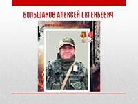 БОЛЬШАКОВ АЛЕКСЕЙ ЕВГЕНЬЕВИЧ, 1982 года рождения. В нашей школе учился с первого по восьмой класс. Его характер был упрямым и справедливым, что делало его хорошим товарищем. Сослуживцы вспоминают его как отчаянного человека, который всегда готов был прийти на помощь. После получения повестки, не раздумывая отправился в военкомат, считая своим долгом защищать Россию. 8 октября 2022 года мужчина отправился в зону проведения специальной военной операции. К сожалению, 11 сентября 2023 года его жизнь трагически оборвалась. Алексей погиб, пытаясь вытащить из окопа и спасти раненого товарища. Он был иссечён осколками от сброшенного взрывного устройства и скончался от сильной кровопотери. Этот подвиг стал символом его мужества и самоотверженности. За свои подвиги Алексей был награжден медалью "За воинскую доблесть" 2 степени и "Орденом Мужества". Он оставил после себя светлую память и мечты о будущем для своего сына, которого хотел вырастить достойным человеком.